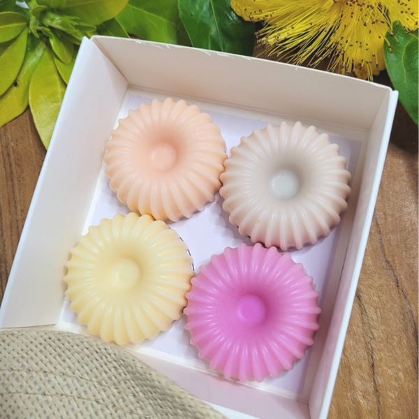 Ce coffret contient quatre fondants parfumés de 20g chacun :